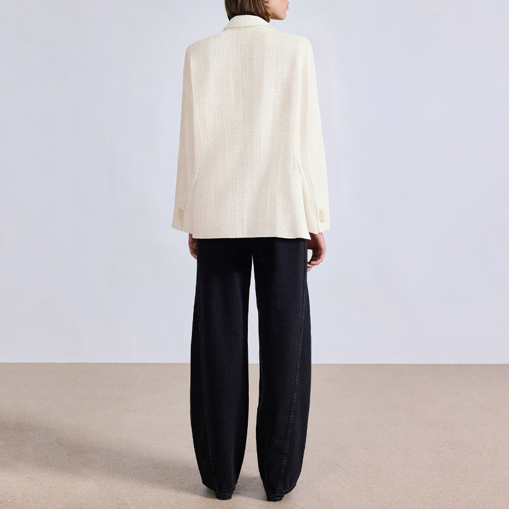 Details Lapel design: classic lapel, simple and elegant, highlighting professional and fashionable temperament. Long sleeve style: standard long sleeve design, suitable for multi-season wear, warm and practical. Fashion texture: unique texture design, increase visual layering, give the jacket a modern and personalized feel. Flap pockets: practical flap pockets on both sides, convenient for carrying small items, with decorative effect. Double-breasted…