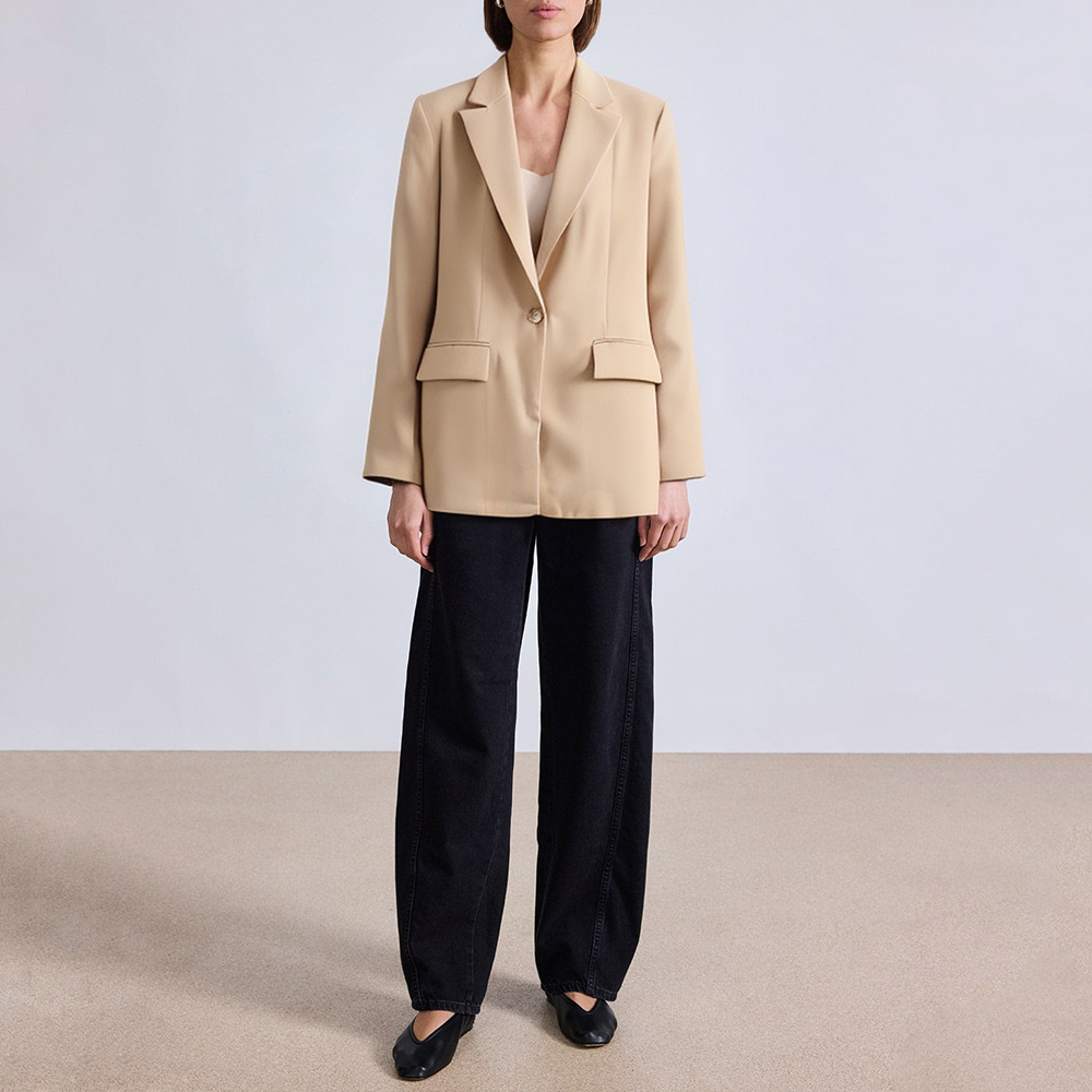 Details Lapel design: The classic lapel has neat lines, showing professional temperament, and it is easy to control the workplace or daily style. Single button placket: Simple single button closure, easy to put on and take off, retaining the capable and neat design language. Long sleeve cut: Full long sleeve design, fits the arm line, suitable for multi-season matching. Flap…