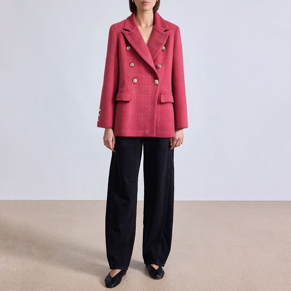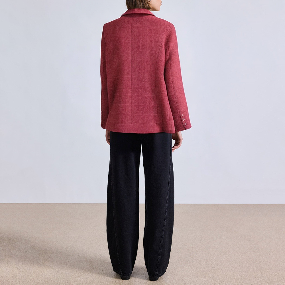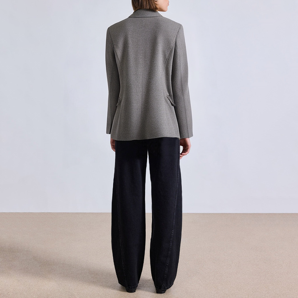 Details Lapel design: classic lapel cut, modifying facial lines, creating a capable and neat workplace temperament. Long sleeve version: comfortable sleeve length, suitable for all seasons, convenient for layering with various inner wear items. Textured fabric: delicate texture, low-key texture, highlighting the high-end sense of clothing. Flap pockets: flap pockets on both sides, combining practical functions with fashionable decoration. Double-breasted…