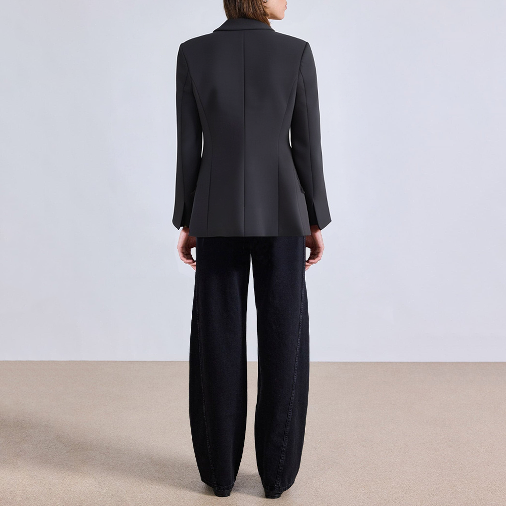 Details Lapel design: classic lapel structure, neat and generous, showing capable temperament, suitable for workplace or business wear. Long sleeve tailoring: standard sleeve length, easy to match with shirts, sweaters and other inner wear, suitable for all seasons. Double-breasted placket: symmetrical double-breasted design, enhances the sense of structure and formality, presenting a refined and stylish professional image. Flap pockets: flap…
