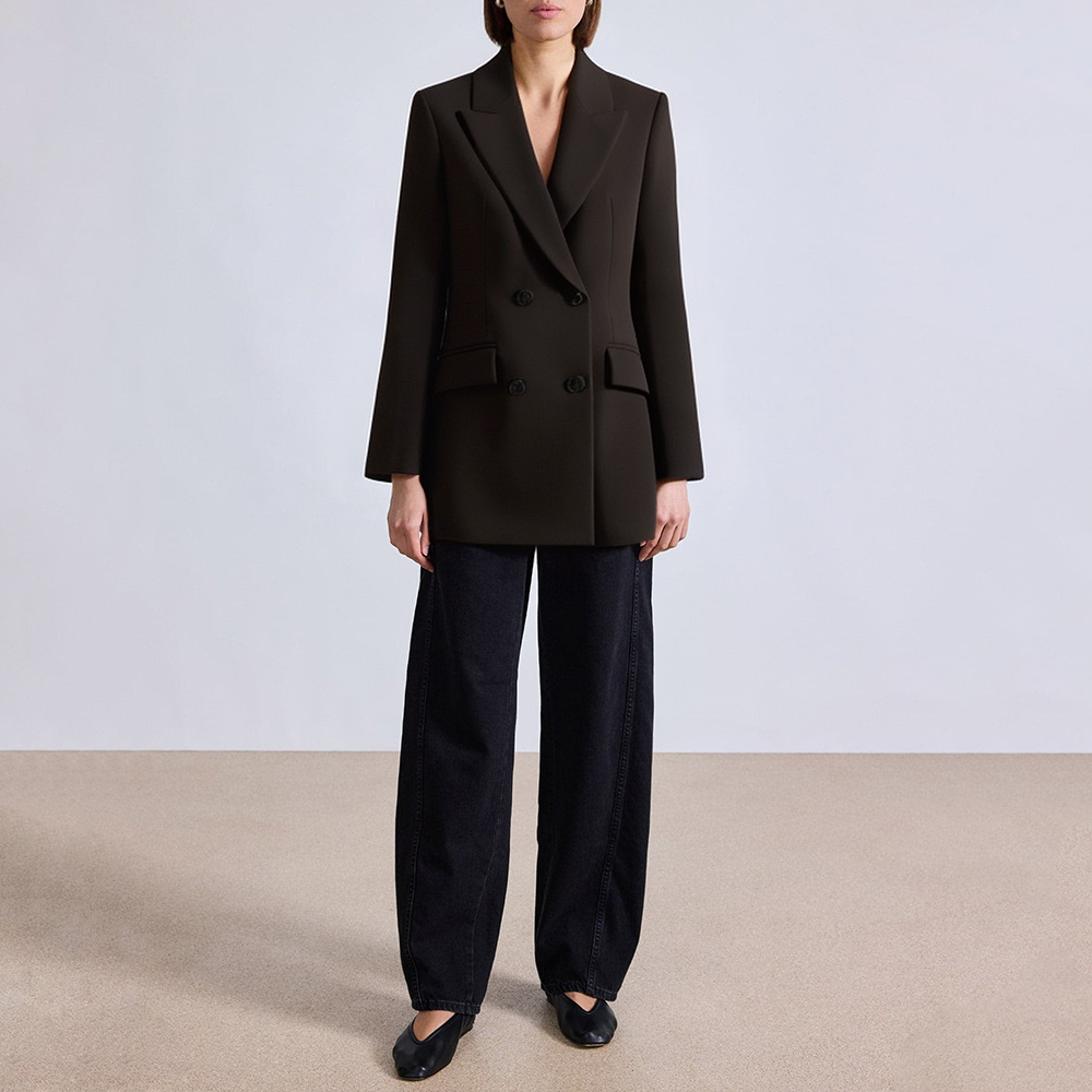 Details Lapel design: neat lapel cut, showing the classic suit shape, enhancing the overall shape and professional temperament. Double-breasted placket: symmetrical double-breasted design, strong sense of structure, visually modifying the body shape, adding more heroic and exquisite feeling. Padded shoulder structure: adding shoulder pad design, enhancing the shoulder line, shaping the neat and upright upper body contour, and enhancing the…