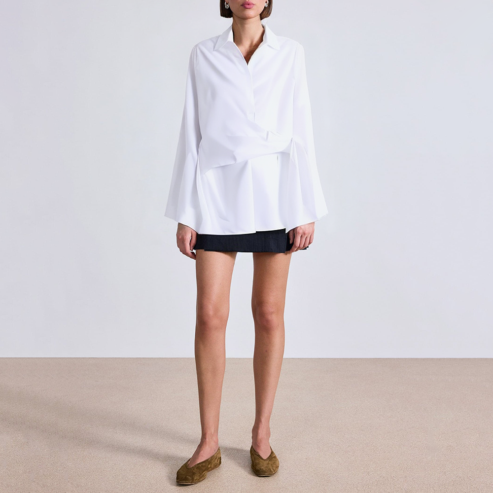 Details Lapel design: The neat lapel design outlines the neck line, adds a sense of professionalism, and creates a capable and intellectual professional image. Cross design: The front adopts a unique cross-wrapped design, breaking the monotony of traditional shirts and adding a sense of fashion and layering. Side slit details: The side slit design of the hem improves the overall…