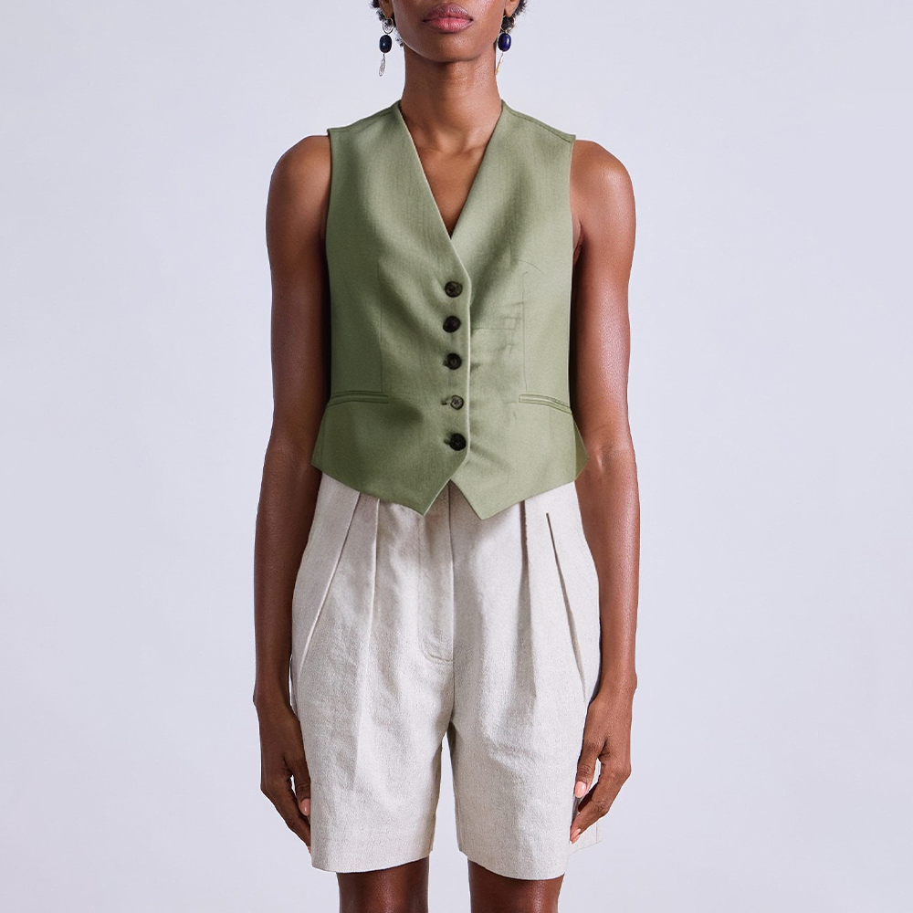 Details Classic V-neck: Modifies the neck line, shows a capable and elegant temperament, and is easy to match with a variety of inner wear items. Sleeveless tailoring: Frees the arms to move freely, suitable for wearing alone in spring and autumn or layering with shirts, sweaters, etc. in winter. Seam details: Fine stitching and structural splicing enhance the overall texture…