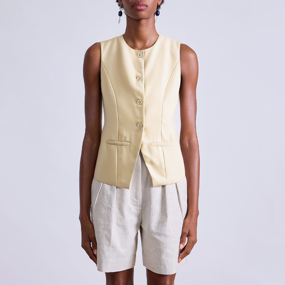 Details Round neck design: Simple and generous round neck, modify the neck line, easy to match with various inner wear items. Sleeveless version: Classic sleeveless design, suitable for layering, easy to cope with changing seasons. Solid color design: Elegant solid color, versatile and easy to wear, highlighting the simple and neat professional temperament. Pleated details: The pleated design of the…
