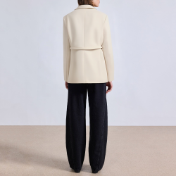 Lapel design: classic suit lapel cut, outlining the neat neck and shoulder lines, adding professional and capable temperament.