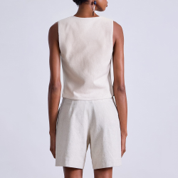 V-neck cut: modifies the neck line, showing an elegant and capable temperament, and is convenient for wearing with a variety of tops.