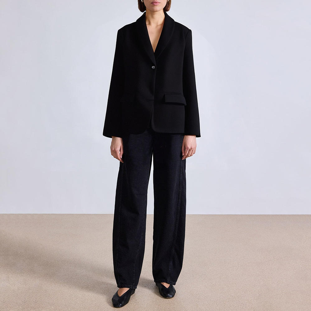 Black single button breathable women’s suit jacket