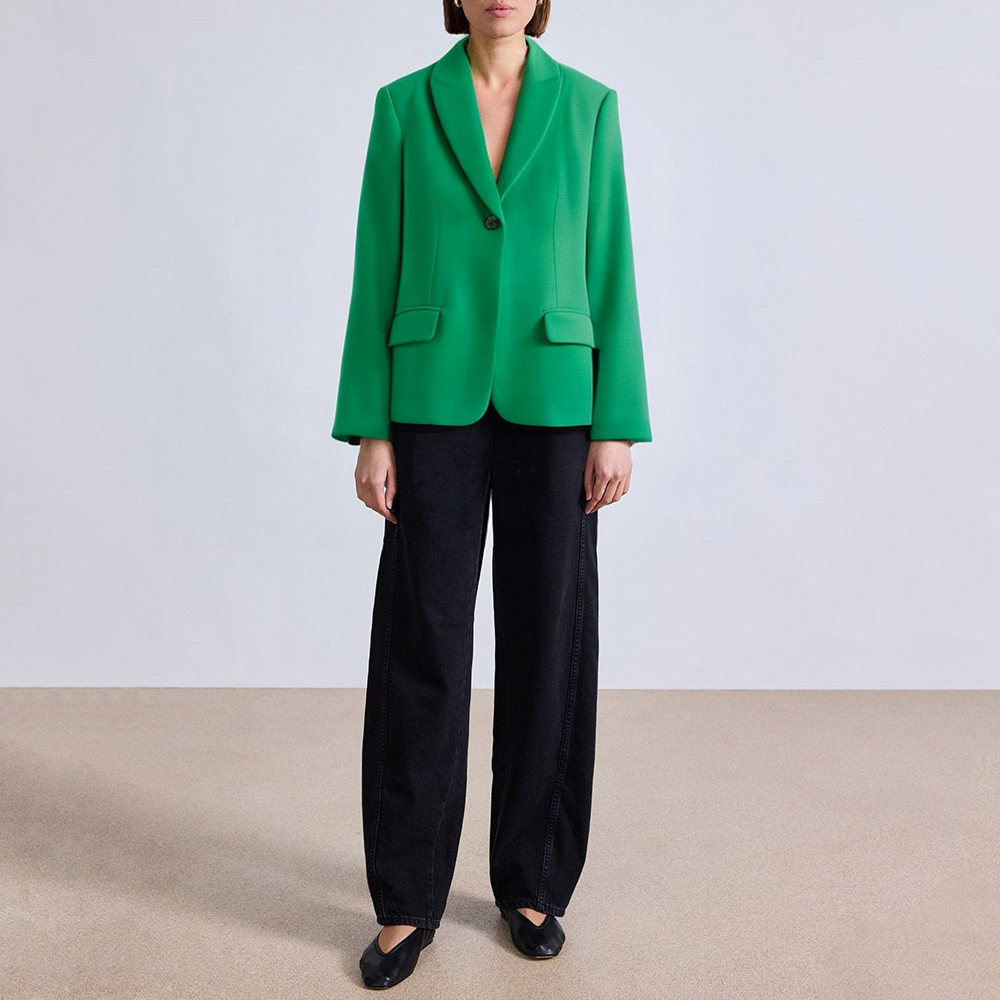 Green single button thick suit jacket for women