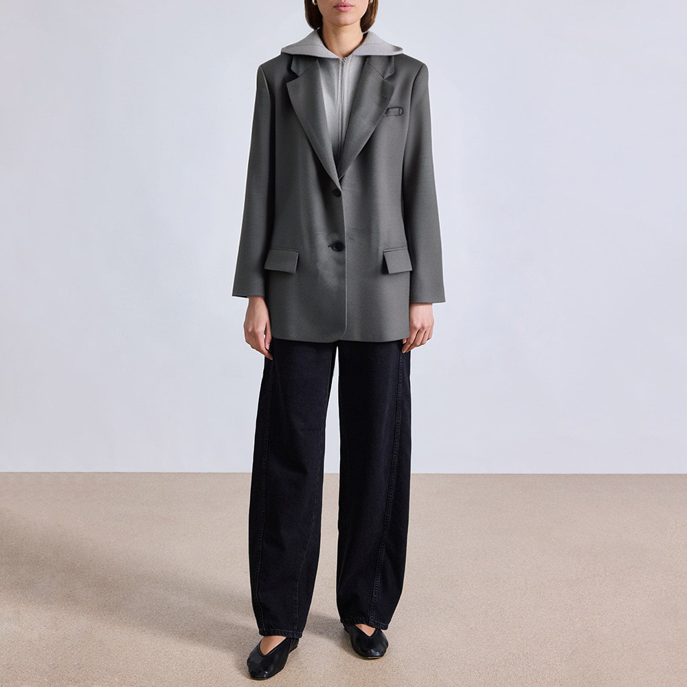 Loose hooded long sleeve ladies suit jacket